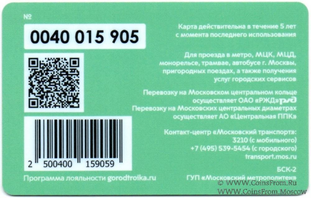 Карта залоговая (0040). Для проезда в метро, МЦК, МЦД, монорельсе, трамвае, автобусе г. Москвы, пригородных поездах, а также получения услуг городских сервисов.