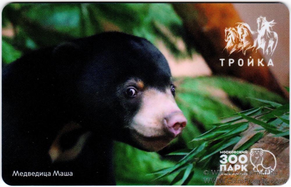 Электронная транспортная карта "Тройка". Размер: 85,5 * 54 мм. Карта "Тройка" с изображением малайской медведицы по кличке "Маша" — самый редкий вид медведей, который занесён в Красную книгу. Серия из 4-х карт (вариант 4).