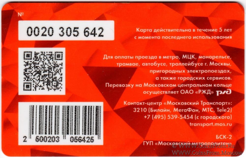 Карта залоговая (0020), действительна в течение 5 лет с момента последнего использования. Для оплаты проезда в метро, МЦК, монорельсе, трамвае, автобусе, троллейбусе г. Москвы, пригородных электропоездах, а также городских сервисов.