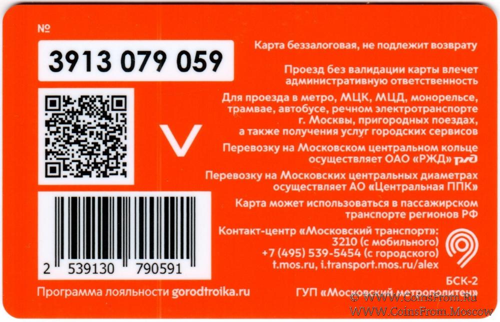 Карта беззалоговая (3913), не подлежит возврату. Проезд без валидации карты влечет административную ответственность. Для проезда в метро, МЦК, МЦД, монорельсе, трамвае, автобусе, речном электротранспоре г. Москвы, пригородных поездах, а также получения услуг городских сервисов.