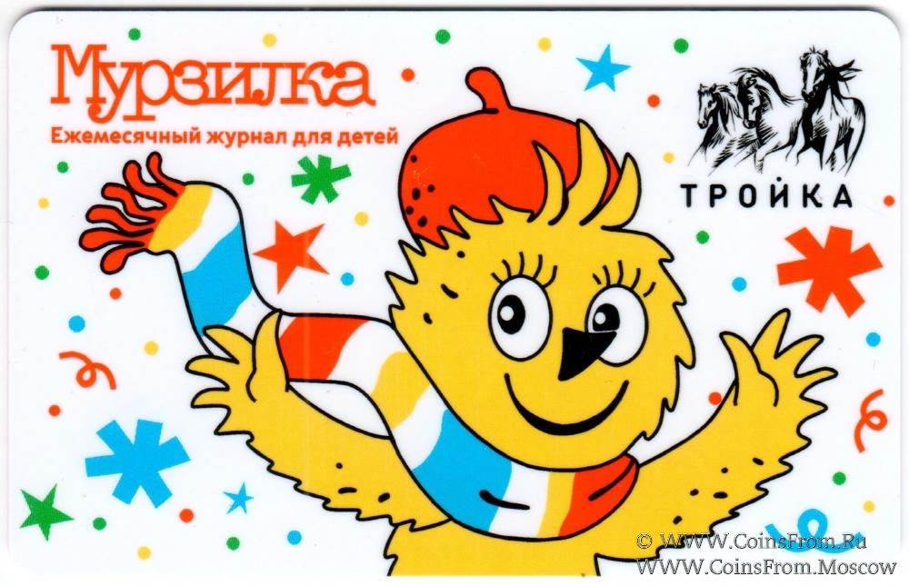 Электронная транспортная карта "Тройка". Размер: 85,5 * 54 мм. Серия из 3-х карт "Тройка", выпущенных в честь 100-летнего юбилея детского журнала "Мурзилка"(вариант 2): "Мурзилка".