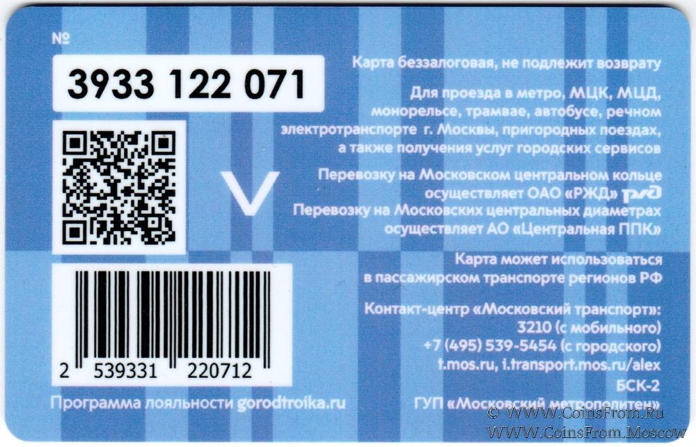 Карта беззалоговая для проезда в метро, МЦК, монорельсе, трамвае, автобусе, троллейбусе г. Москвы, пригородных электропоездах, а также городских сервисов.