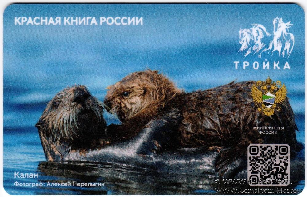 Электронная транспортная карта "Тройка". Размер: 85,5 * 54 мм. Выпущена совместно с Минприроды России и посвящена Дню заповедников и национальных парков. Дизайн карты: "Красная книга России. Калан". Фотограф: Алексей Перелыгин.