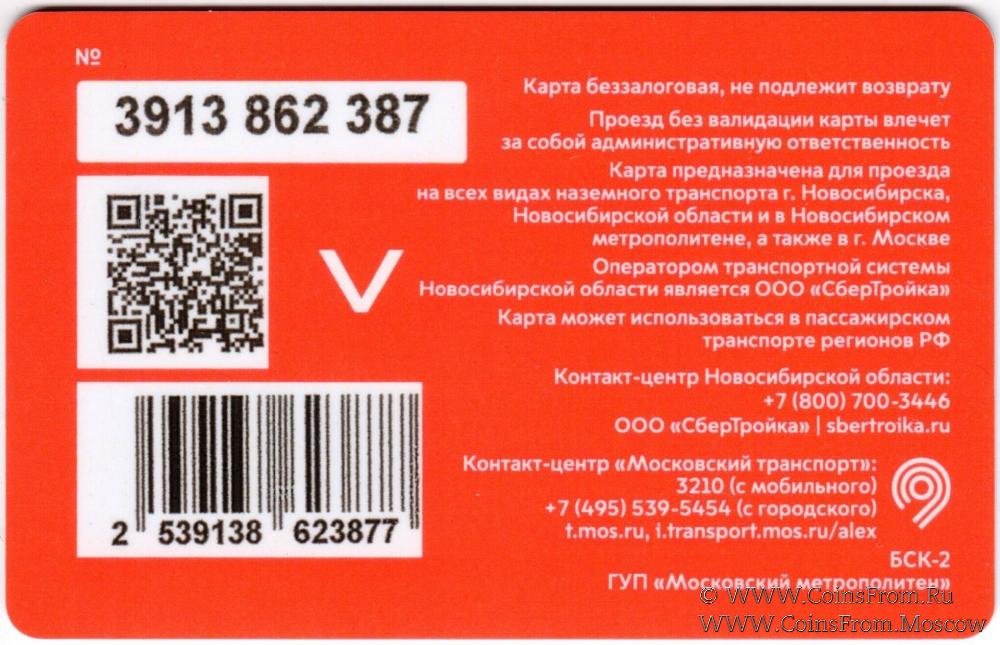 Карта сувенирная (3913) беззалоговая, не подлежит возврату. Проезд без валидации карты влечет административную ответственность. Для проезда на всех видах наземного транспорта г. Новосибюирска, Новосибирской области и в Новосибирском метрополитене, а также в г. Москве.