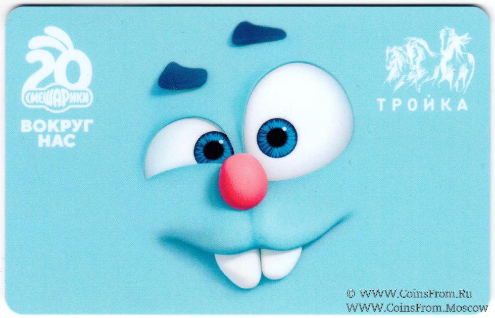 Карта "Тройка" с изображениями персонажей из мультсериала "Смешарики" (Крош), посвященные 20-летию создания, приурочены ко Дню защиты детей (1 июня).