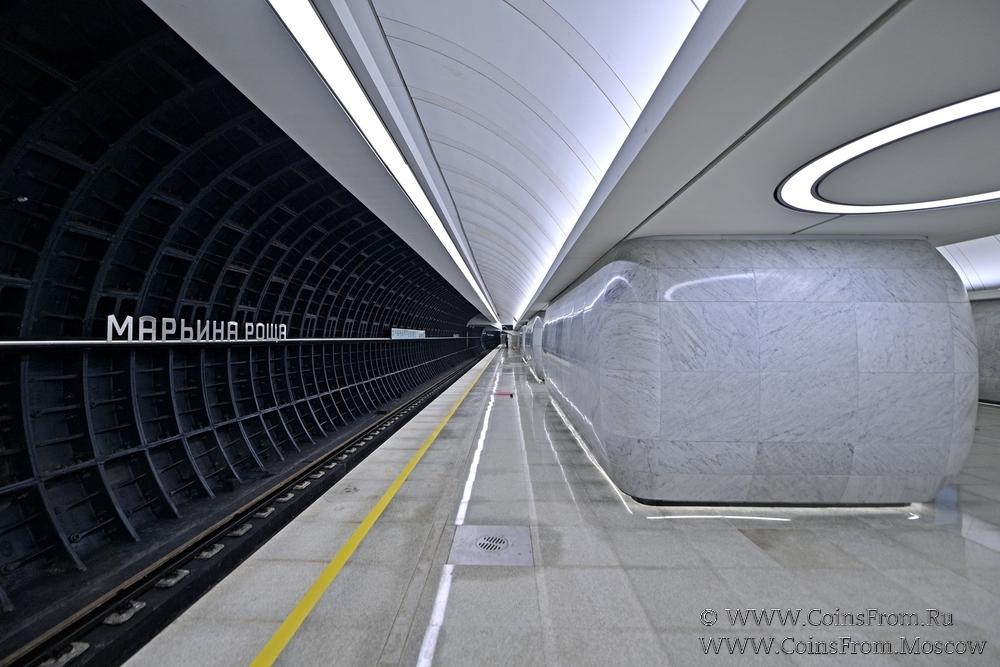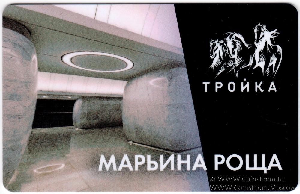 Электронная транспортная карта "Тройка". Размер: 85,5 * 54 мм. На аверсе: дизайн Станция метро "Марьина роща". Станция БКЛ открыта 1 марта 2023 г.