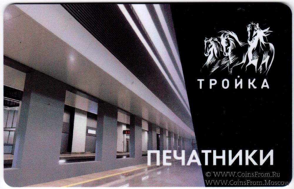 Электронная транспортная карта "Тройка". Размер: 85,5 * 54 мм. На аверсе: дизайн Станция метро "Печатники". Станция БКЛ открыта 1 марта 2023 г.
