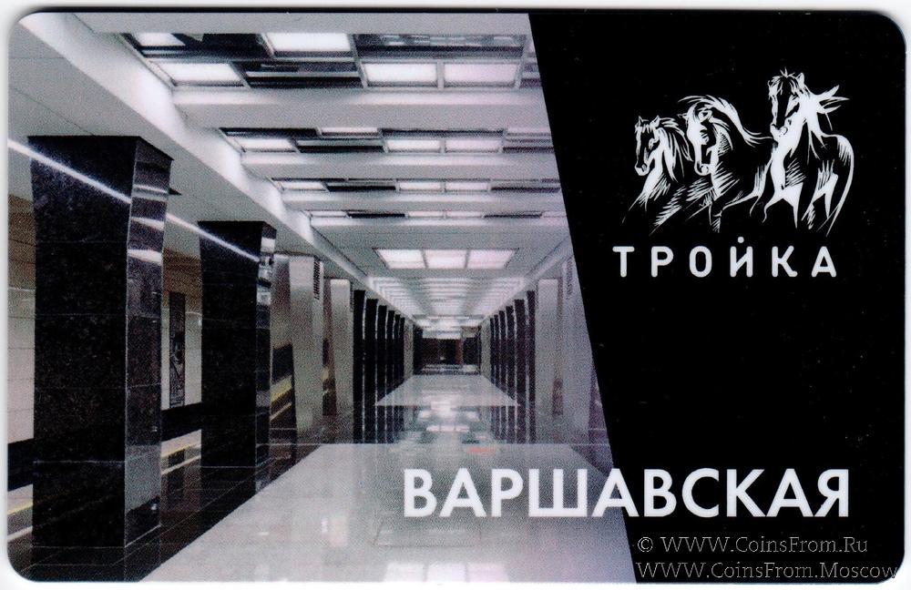 Электронная транспортная карта "Тройка". Размер: 85,5 * 54 мм. На аверсе: дизайн Станция метро "Варшавская". Станция БКЛ открыта 1 марта 2023 г.