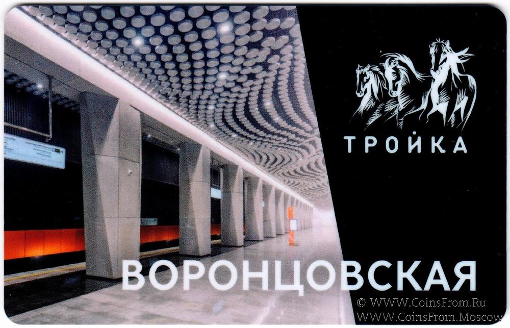 Электронная транспортная карта "Тройка". Размер: 85,5 * 54 мм. На аверсе: дизайн Станция метро "Воронцовская". Станция БКЛ открыта 7 декабря 2021 г.