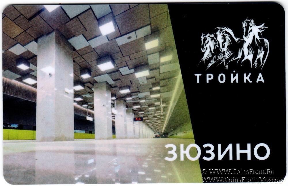 Электронная транспортная карта "Тройка". Размер: 85,5 * 54 мм. На аверсе: дизайн Станция метро "Зюзино". Станция БКЛ открыта 7 декабря 2021 г.