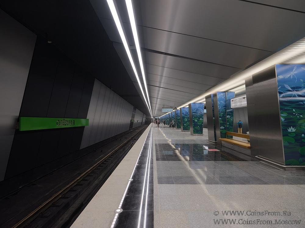 Электронная транспортная карта "Тройка". Размер: 85,5 * 54 мм. На аверсе: дизайн Станция метро "Озёрная". Станция Солнцевской линии (13), открытая 30 августа 2018 года.