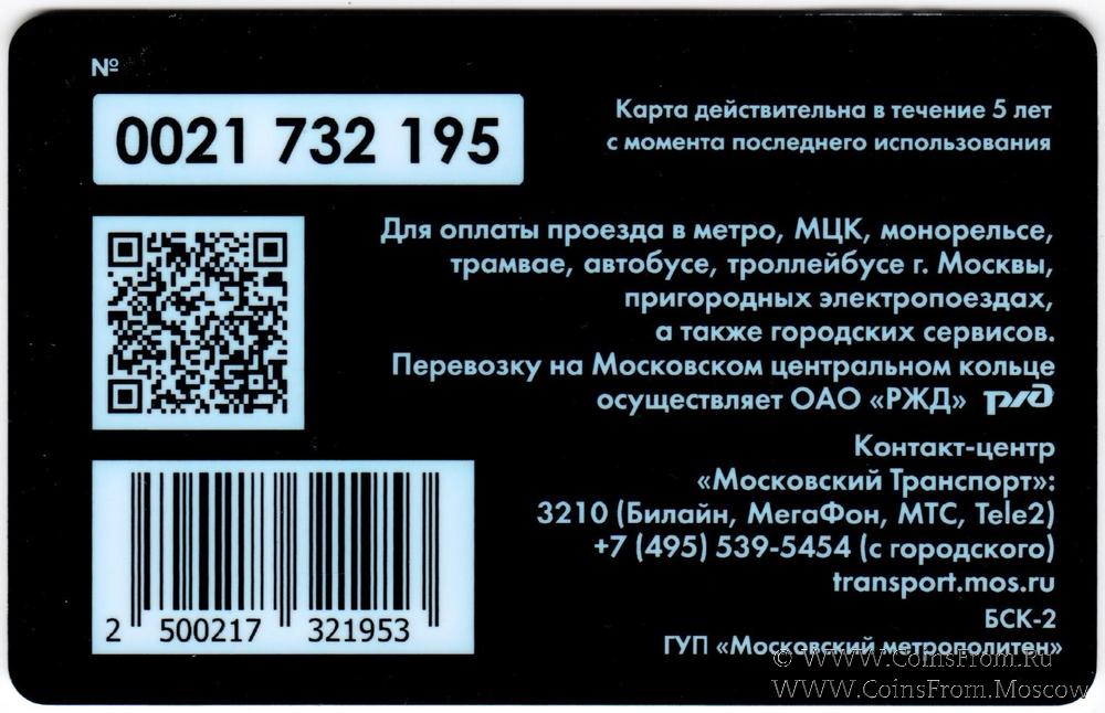 Карта залоговая для проезда в метро, МЦК, монорельсе, трамвае, автобусе, троллейбусе г. Москвы, пригородных электропоездах, а также городских сервисов.