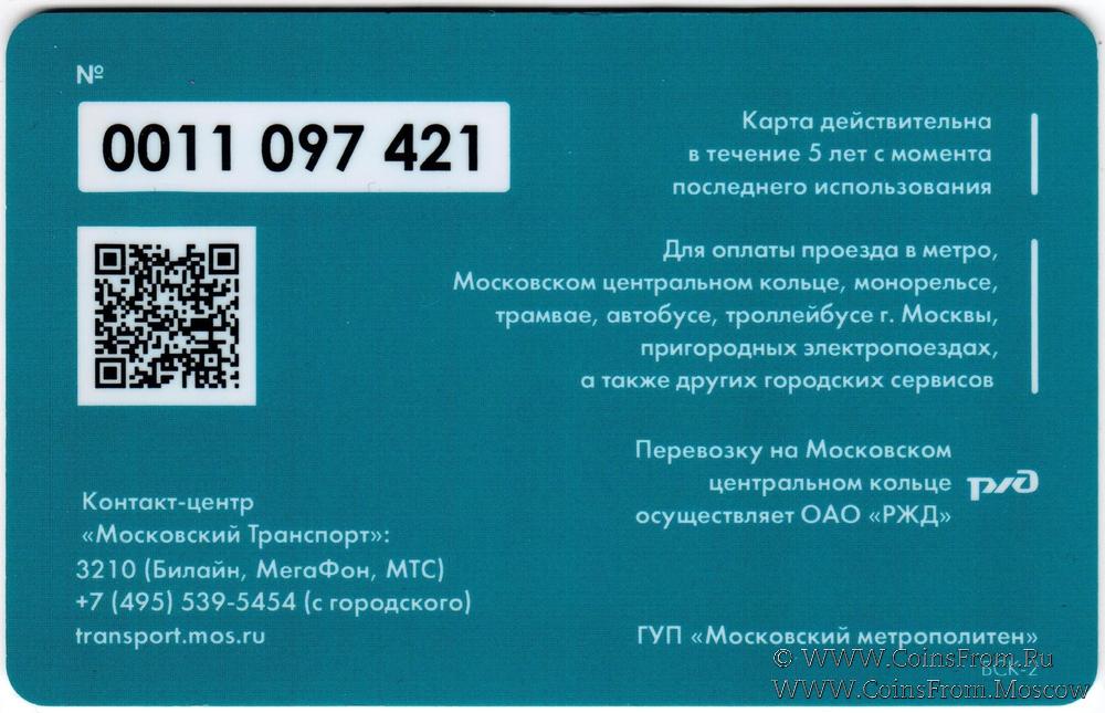 QR-код на обротной стороне маленького размера (ссылка ведет на страницу стоимости проезда на портале "Московский транспорт"), добавлена информация про МЦК, в связс с его запуском в 2016 году. Допечатка с №№ 0017 00х ххх - 0017 01х ххх.