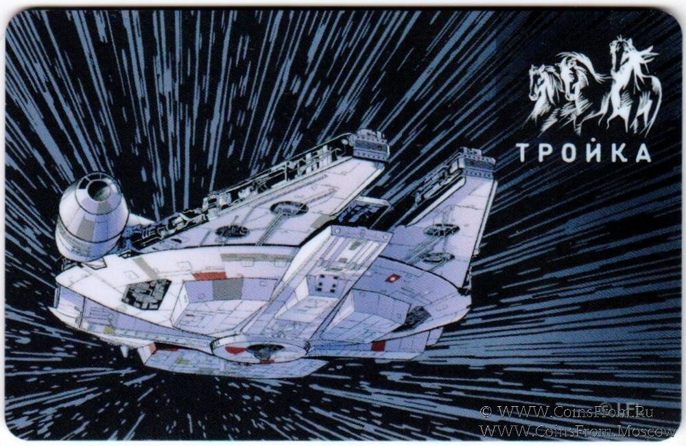 На аверсе: дизайн Star Wars (Боевой корабль "Сокол Тысячелетия")
