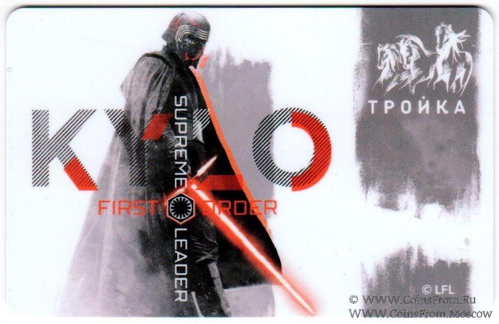 Электронная транспортная карта "Тройка". Размер: 85,5 * 54 мм. На аверсе: дизайн Star Wars (Кайло Рен).