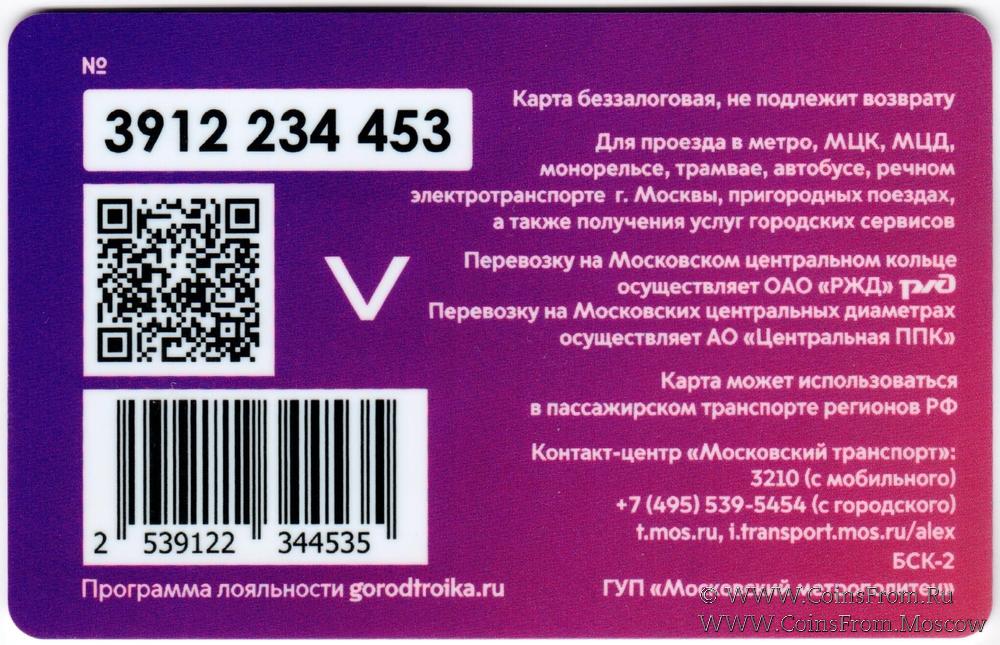 Карта беззалоговая, не подлежит возврату. Для проезда в метро, МЦК, МЦД, монорельсе, трамвае, автобусе, речном автотранспорте г. Москвы, пригородных поездах, а также получения услуг городских сервисов.