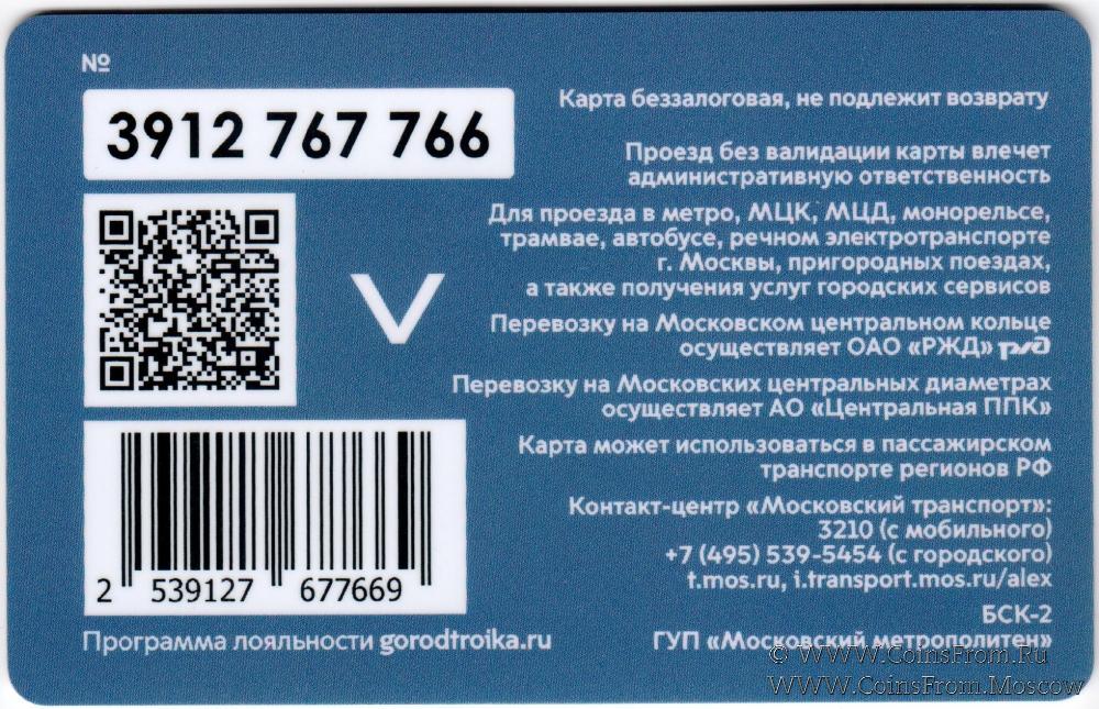 Карта беззалоговая, не подлежит возврату. Проезд без валидации карты влечет административную ответственность. Для проезда в метро, МЦК, МЦД, монорельсе, трамвае, автобусе, речном электротранспорте г. Москвы, пригородных поездах, а также получения услуг городских сервисов.