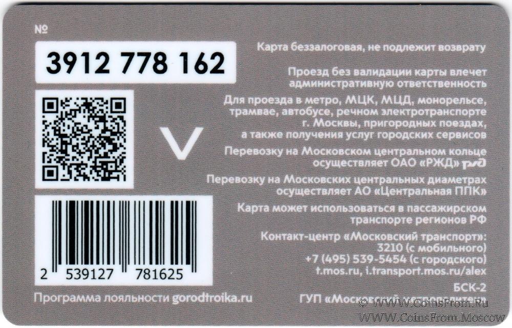 Карта беззалоговая, не подлежит возврату. Проезд без валидации карты влечет административную ответственность. Для проезда в метро, МЦК, МЦД, монорельсе, трамвае, автобусе, речном электротранспорте г. Москвы, пригородных поездах, а также получения услуг городских сервисов.