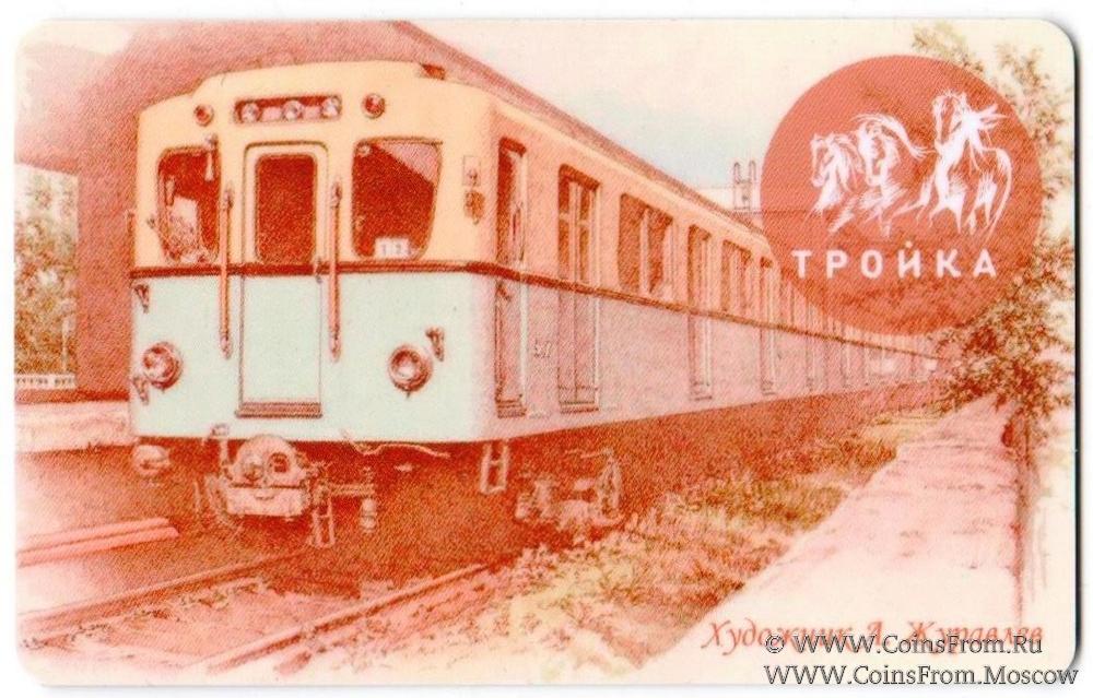 На аверсе: дизайн "Картины художника А.Журавлёва" (поезд метро).